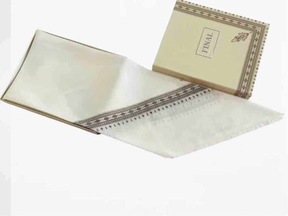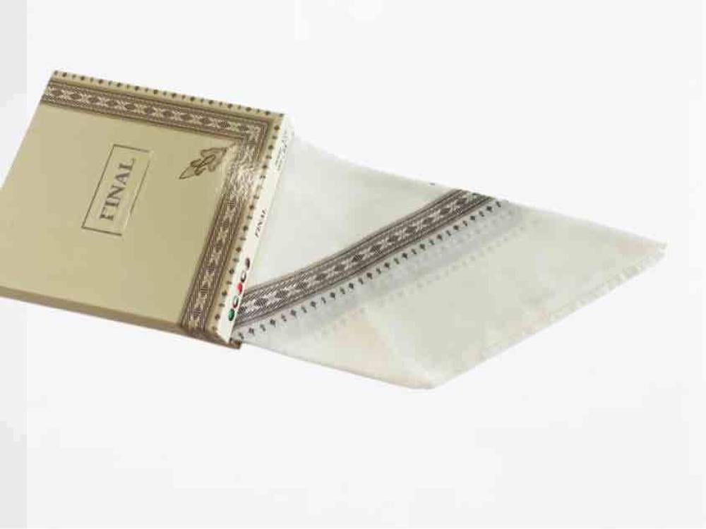 أضف لمسة من الرقي لإطلالتك مع غترة سكري بخطوط بيج